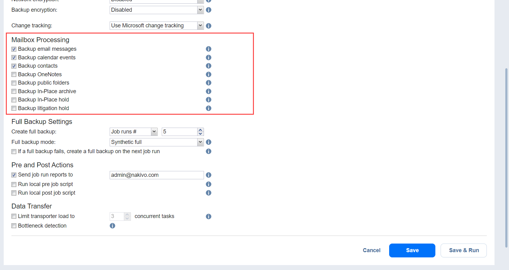 fail object processing: If Microsoft change tracking fails to provide information on changed data for an object and this option is selected, NAKIVO Backup & Replication does not process the object and the job is failed.