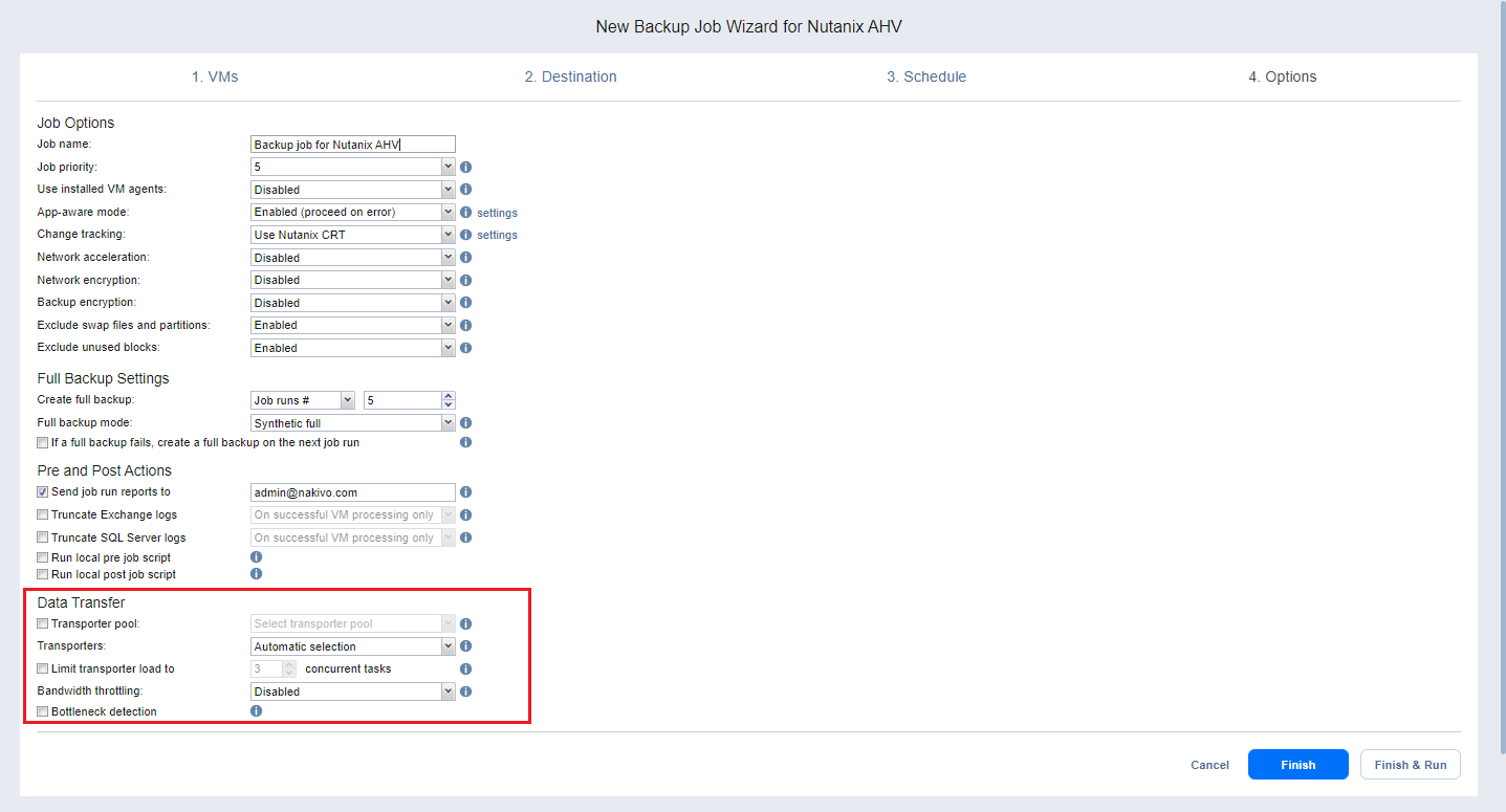 Backup Job Wizard for Nutanix AHV: Options