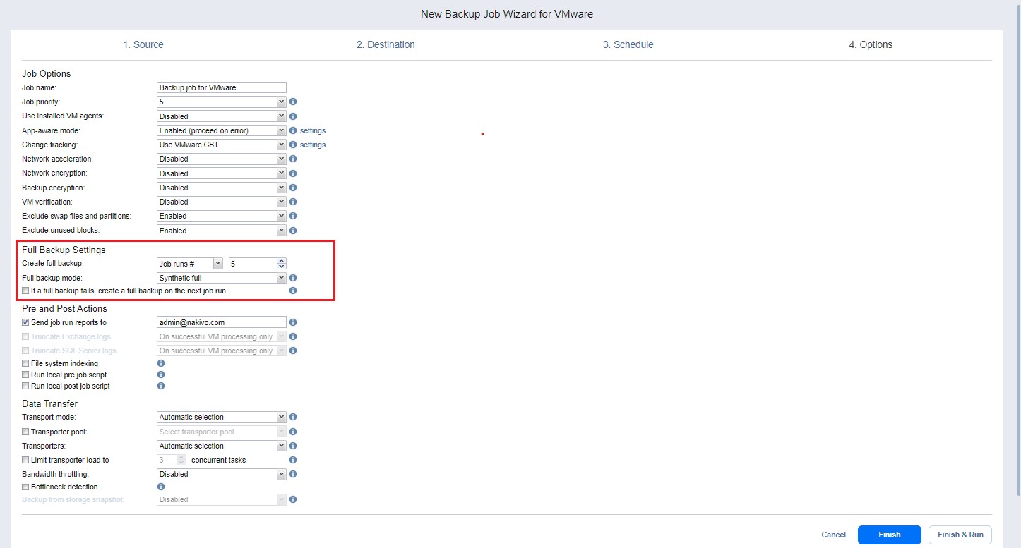 Backup Job Wizard for VMware: Options