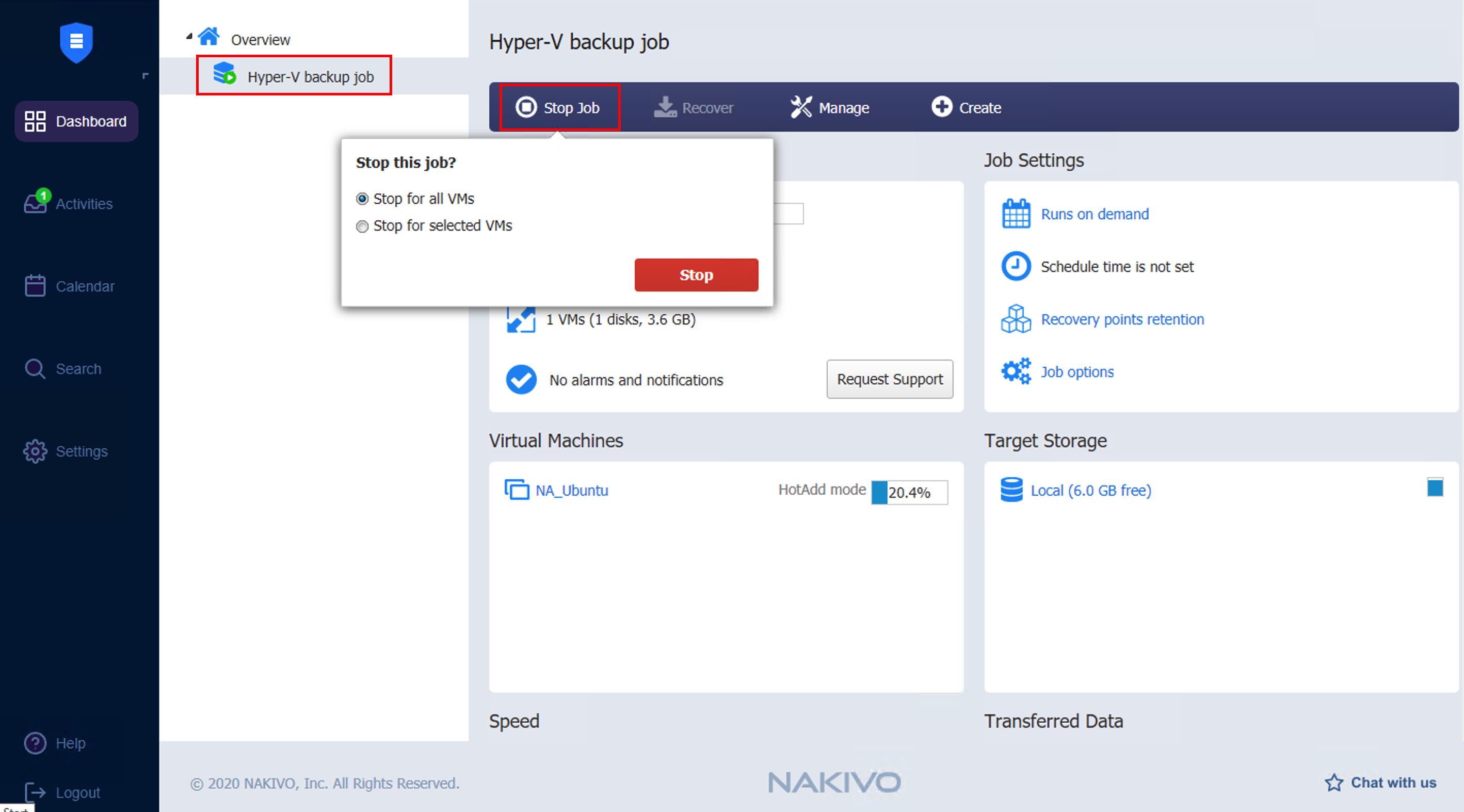 Run for selected VMs: The job will run for the VMs.