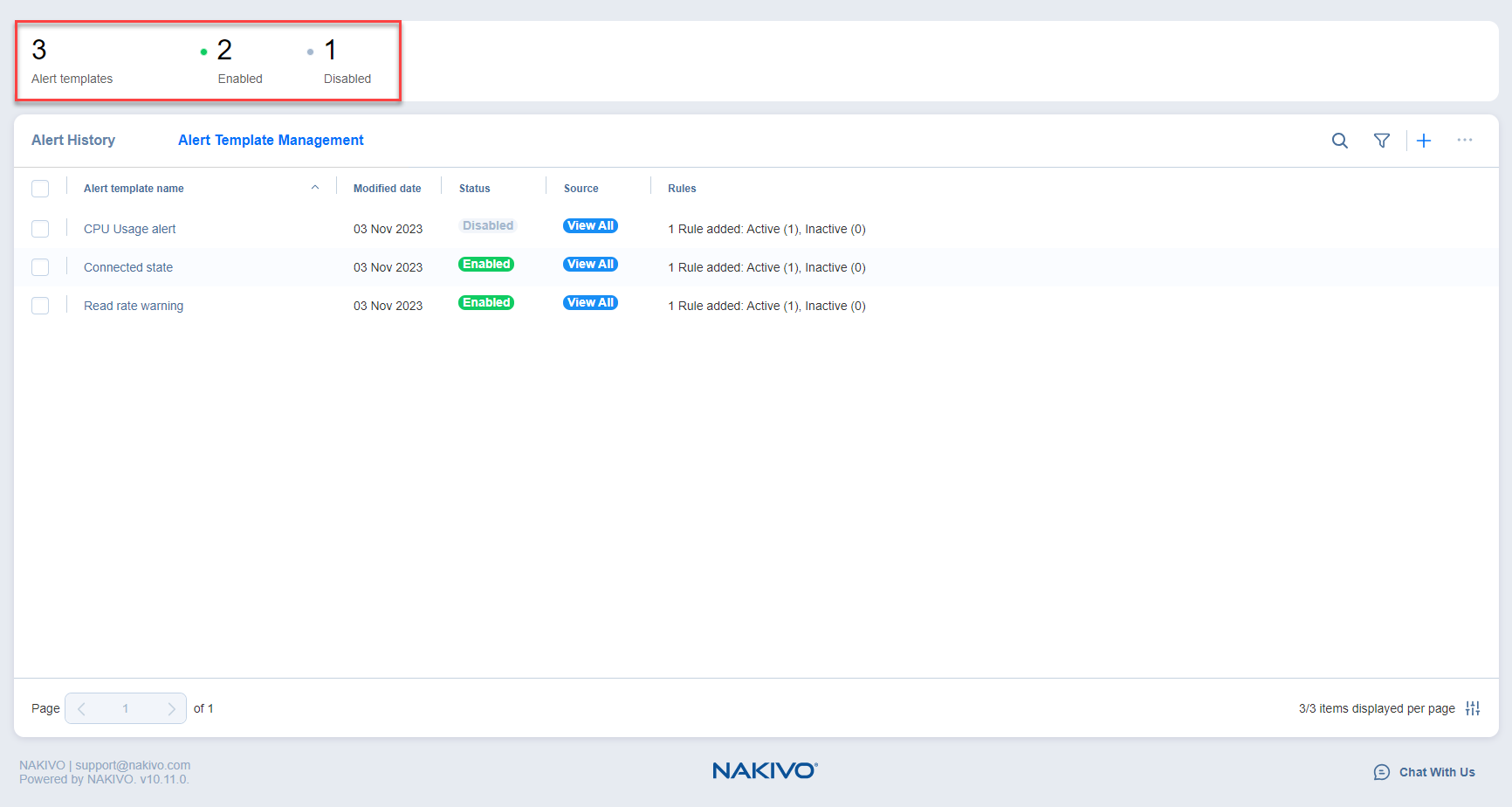 View alert templates: View all enabled and disabled alert templates. You can view details by clicking on an alert template. For details, refer to Viewing Alert Template Details.