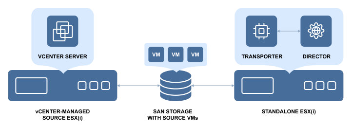If your VMs are located on a Fiber Channel or iSCSI Storage Area Network (SAN) device, NAKIVO Backup & Replication can use direct SAN access for data retrieval. Using this storage access mode can significantly increase the speed of backup and replication while decreasing the load on your production network.