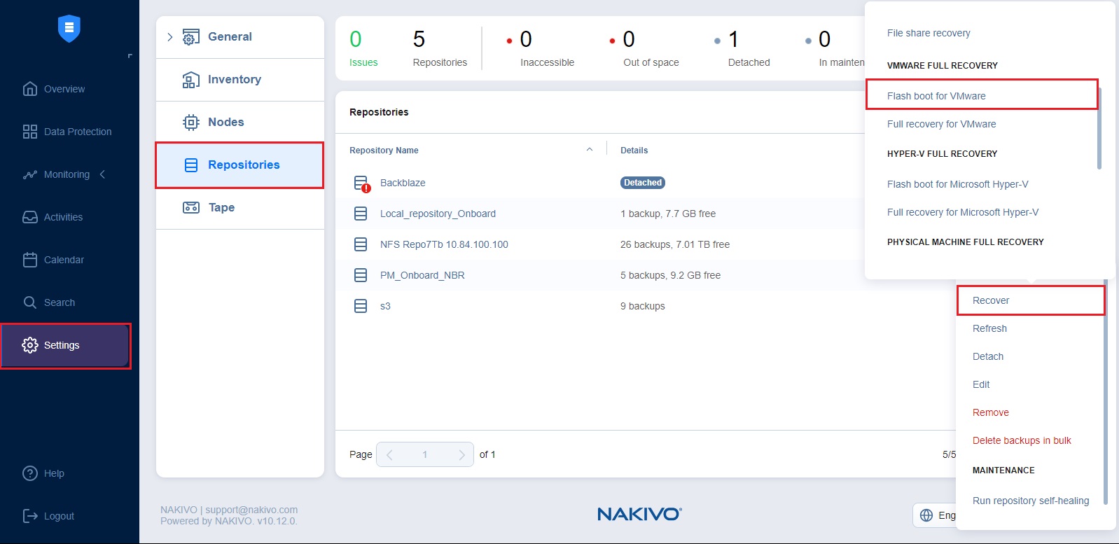 2. Go to the Repositories tab and hover over the Backup Repository containing the backup.