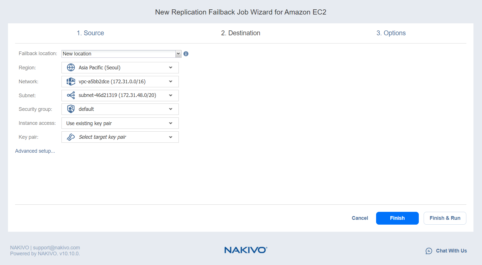 Failback Job Wizard for Amazon EC2: Destination