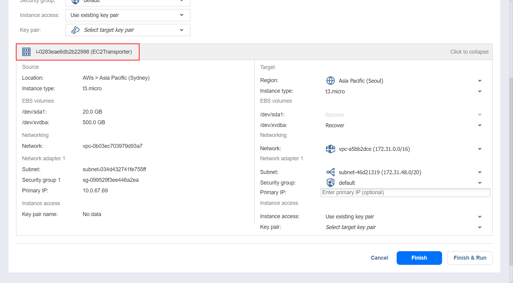 Create a new key pair: A new Amazon EC2 Key Pair will be created and assigned to all recovered EC2 instances. Type in a name for the new Amazon EC2 Key Pair in the Key pair name field and clickDownload.