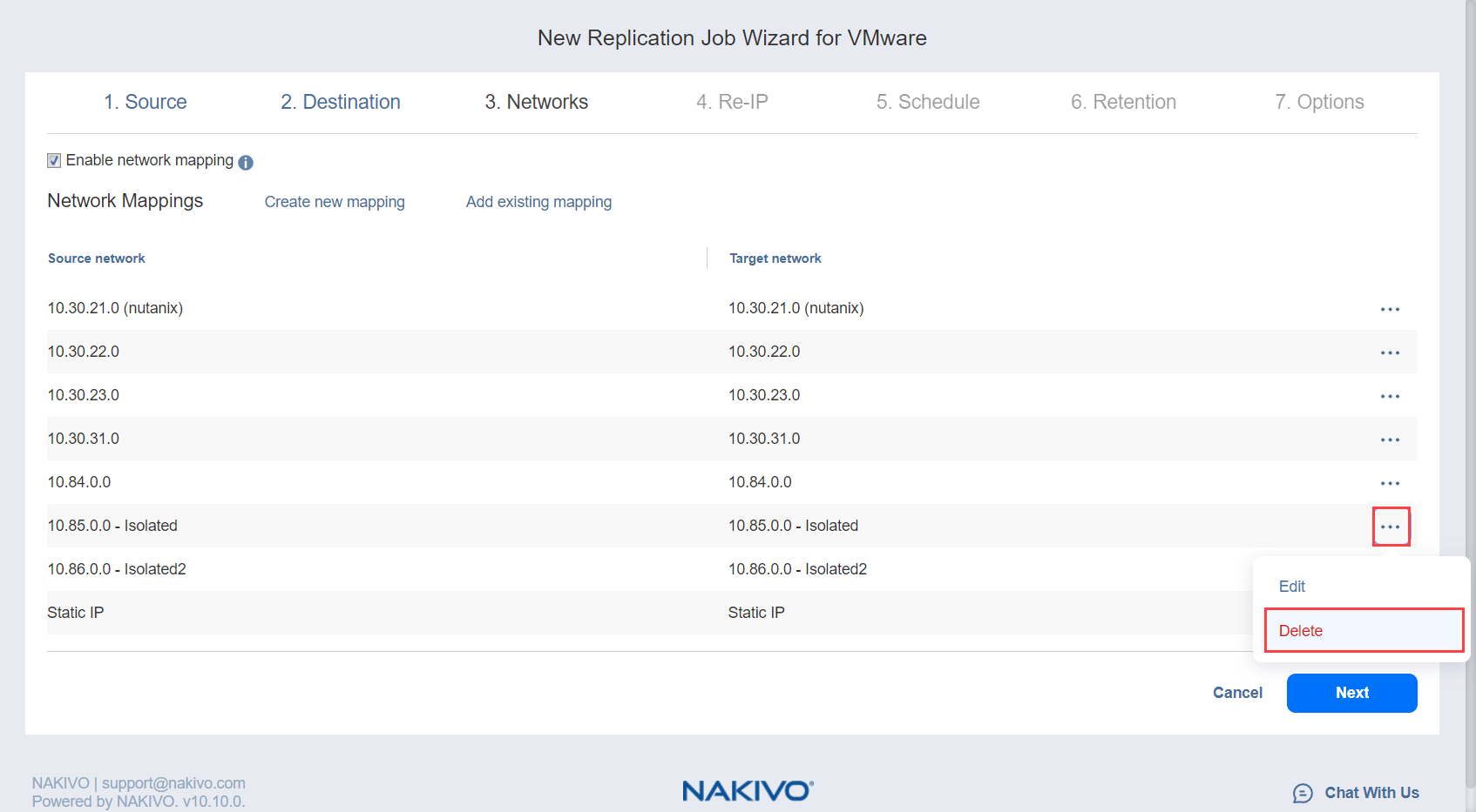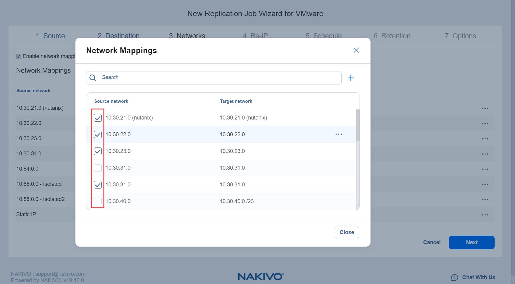 Replication Job Wizard for VMware: Networks