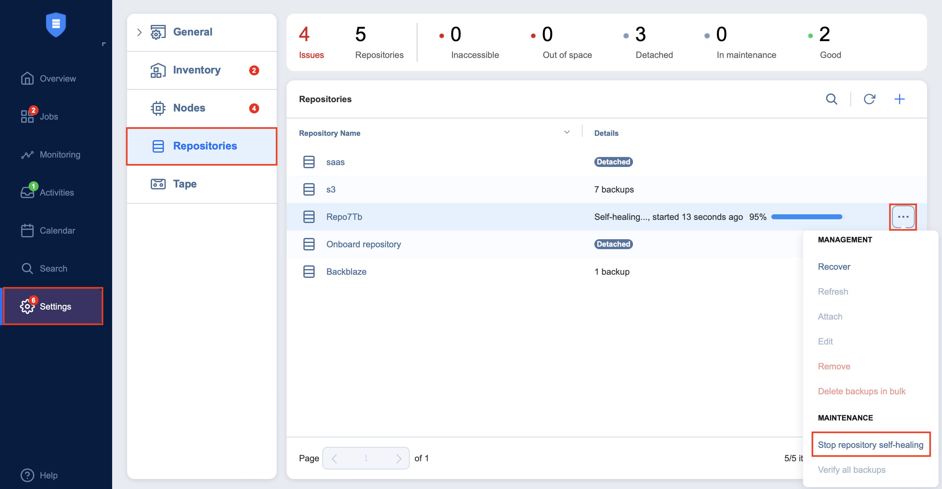 To run the Backup Repository self-healing, follow the steps below: