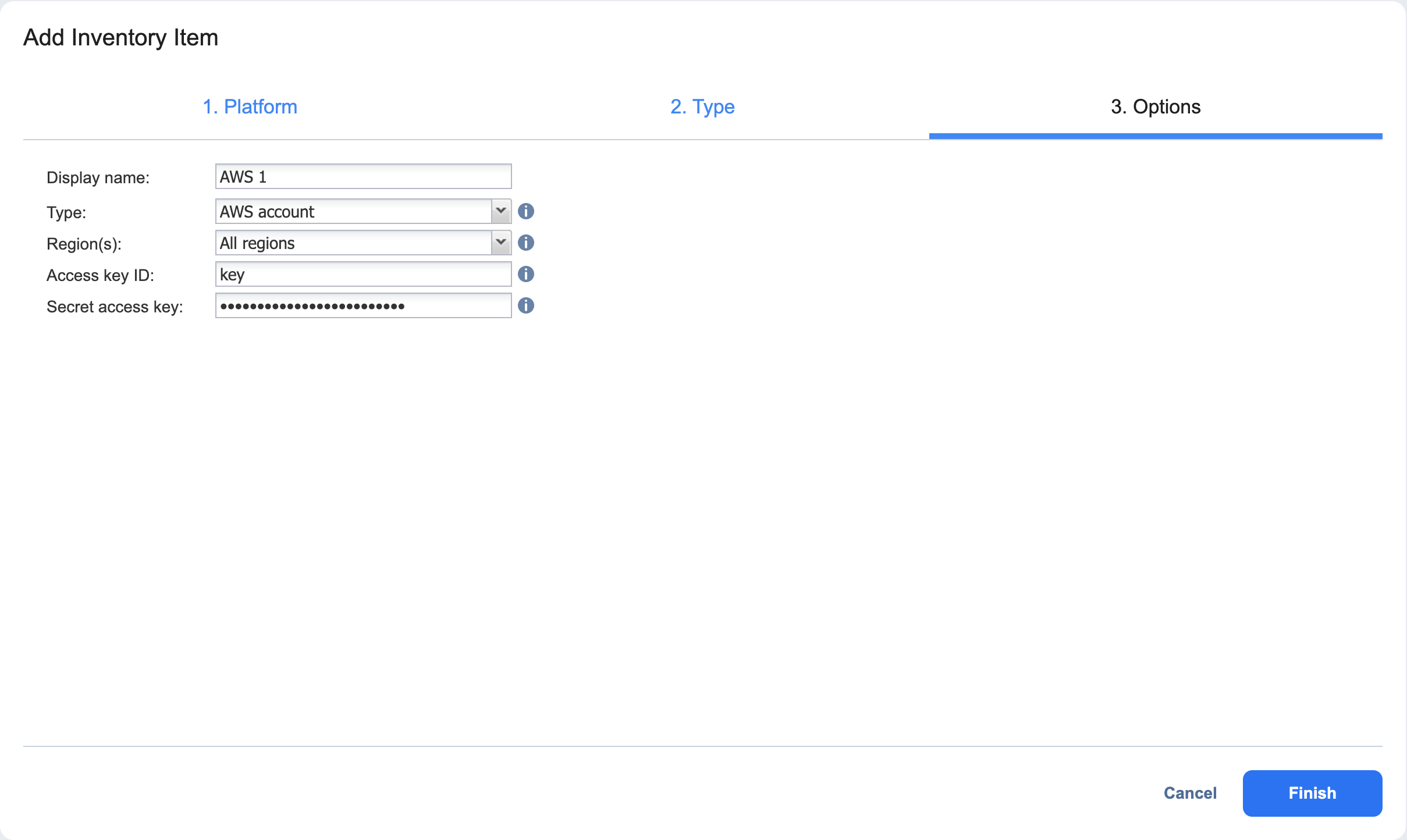 Select the AWS account from the Type drop-down list.