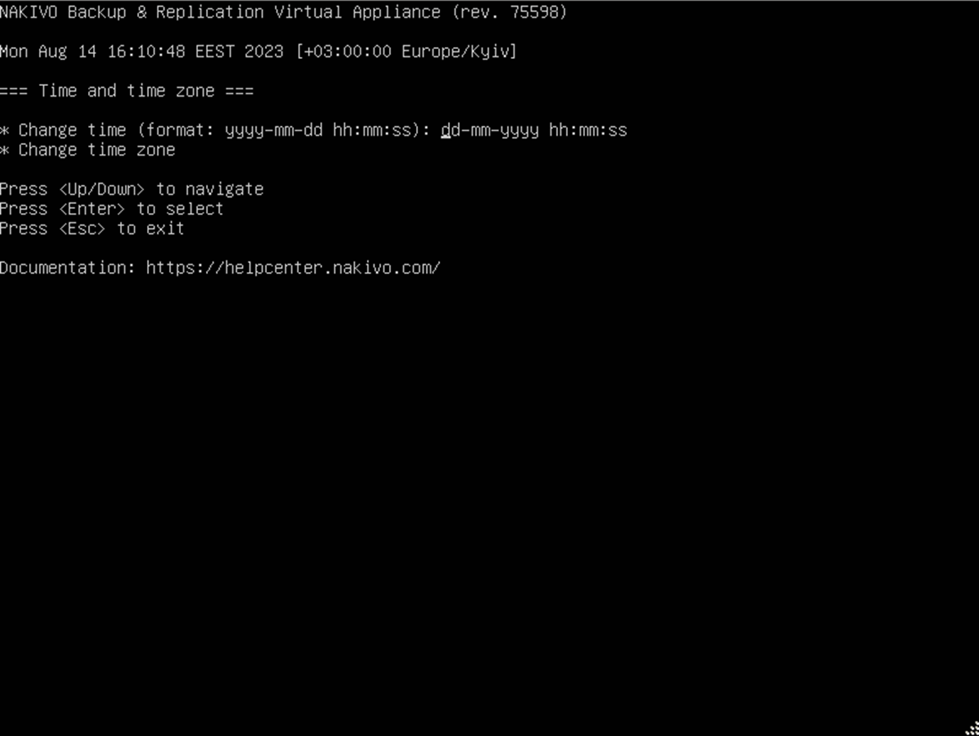 In this screen menu, you can select between two options, Change time and Change time zone.