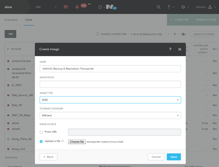To deploy a virtual appliance via the Nutanix Prism application, follow the steps below: