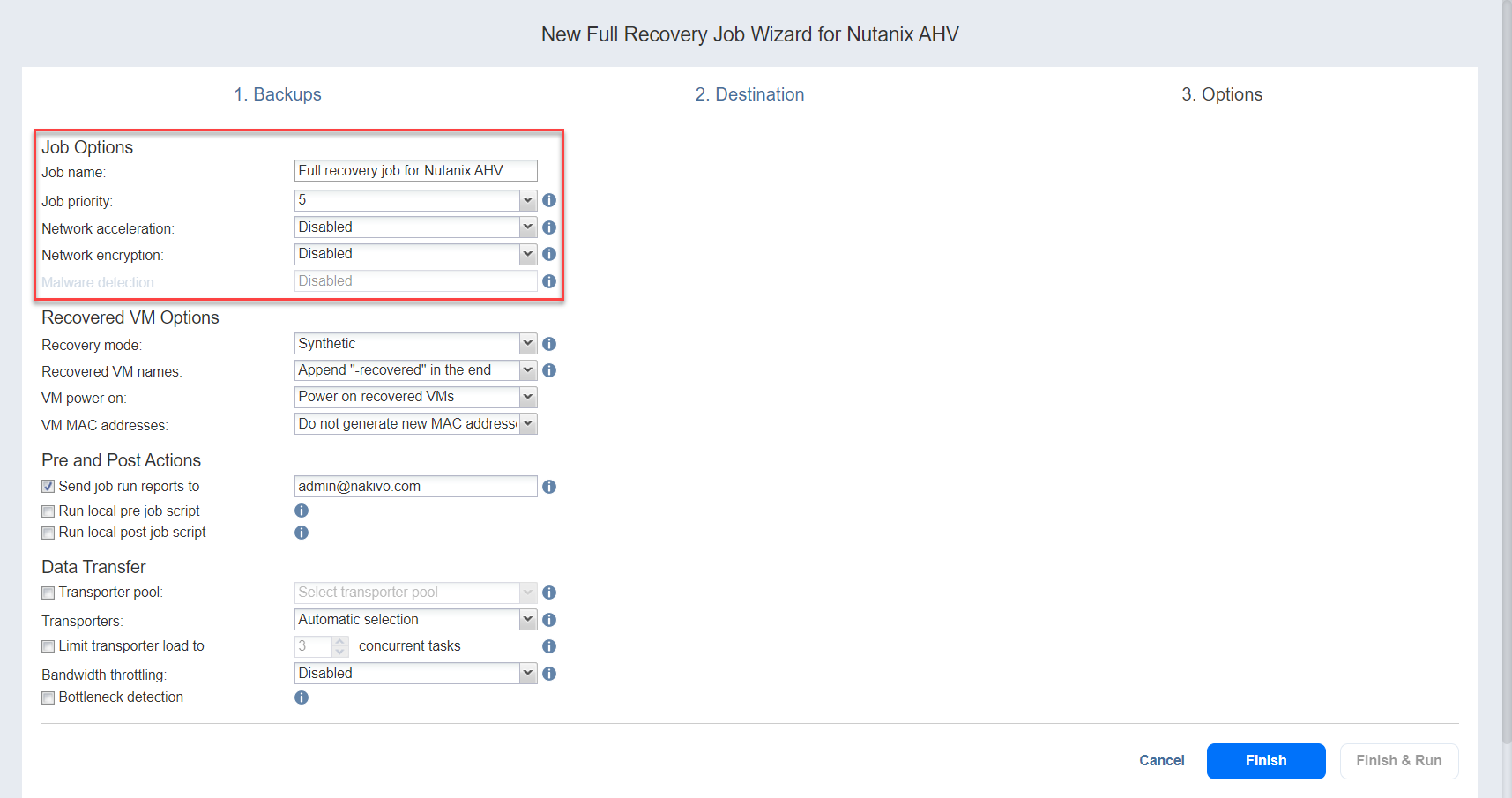 Completing the New Full Recovery Job Wizard for Nutanix AHV
