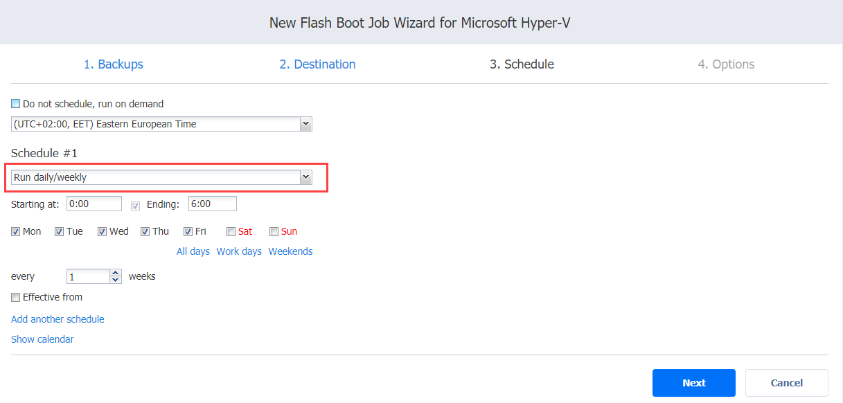 If you need to add an additional schedule, click Add another schedule and configure it as described above.