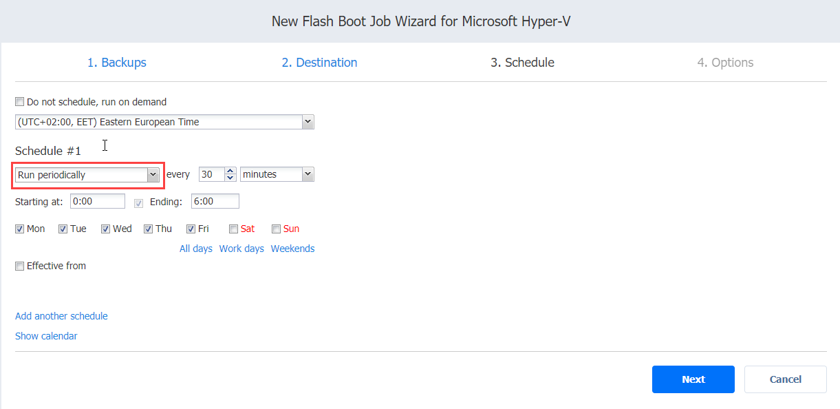 Choose Run periodically from the schedule drop-down list and then choose a time period from the appropriate boxes.