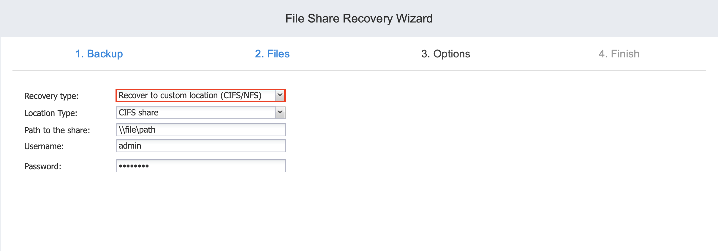 On the Options page, select a recovery and location type. Proceed as described in these sections: