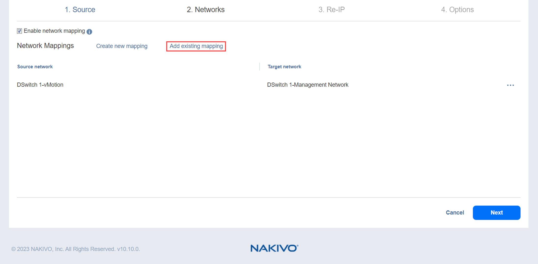 To leave the list of existing network mappings intact, go to the next page of the wizard.
