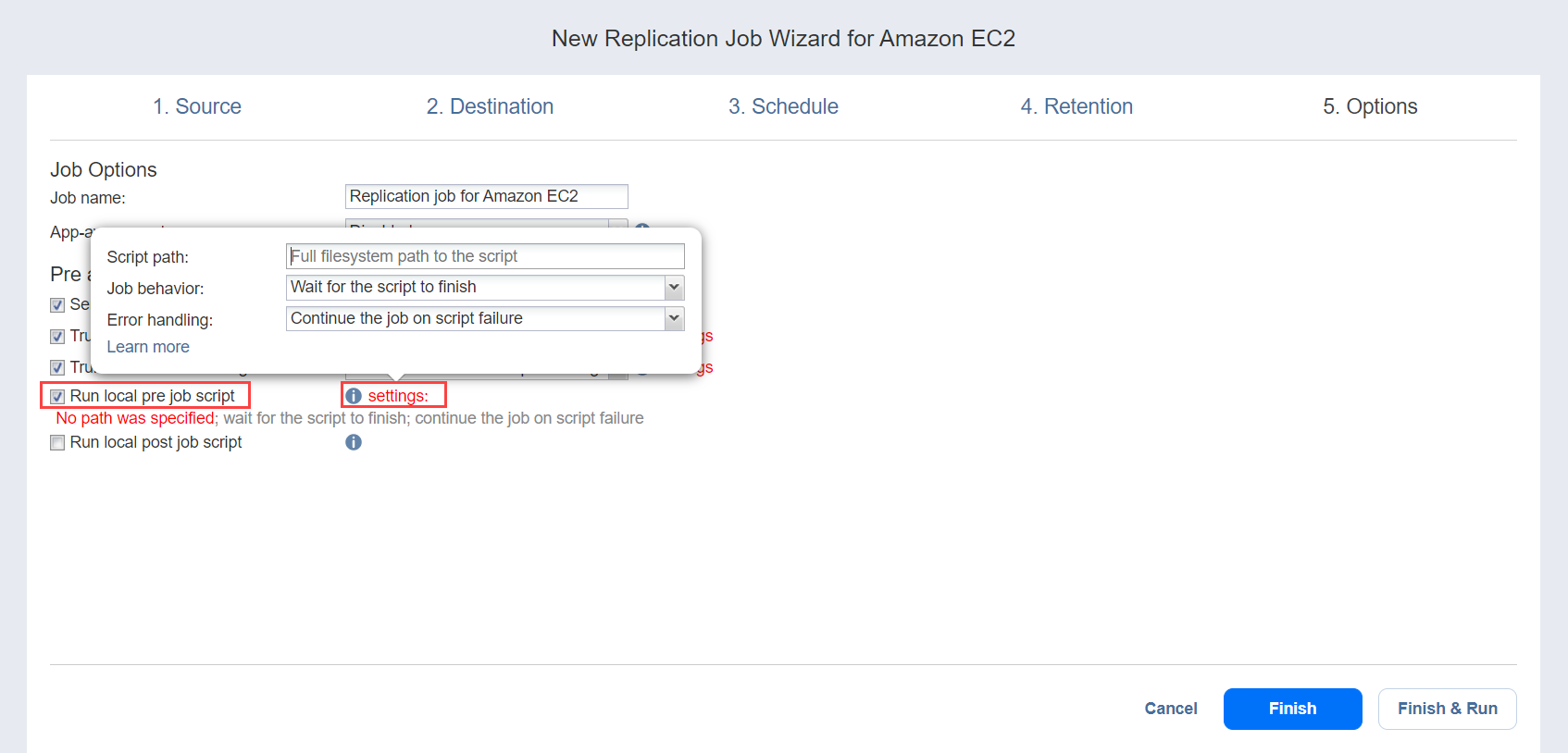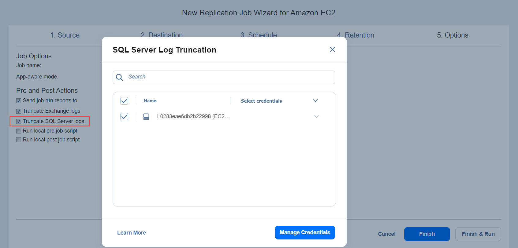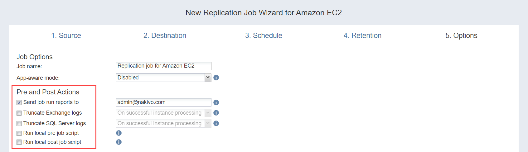 Replication Job Wizard for Amazon EC2: Options