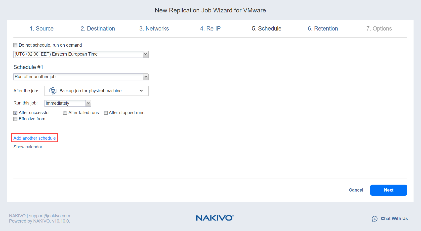 On the Schedule page of the wizard, select to run the replication job manually or schedule the job to run on a regular basis.
