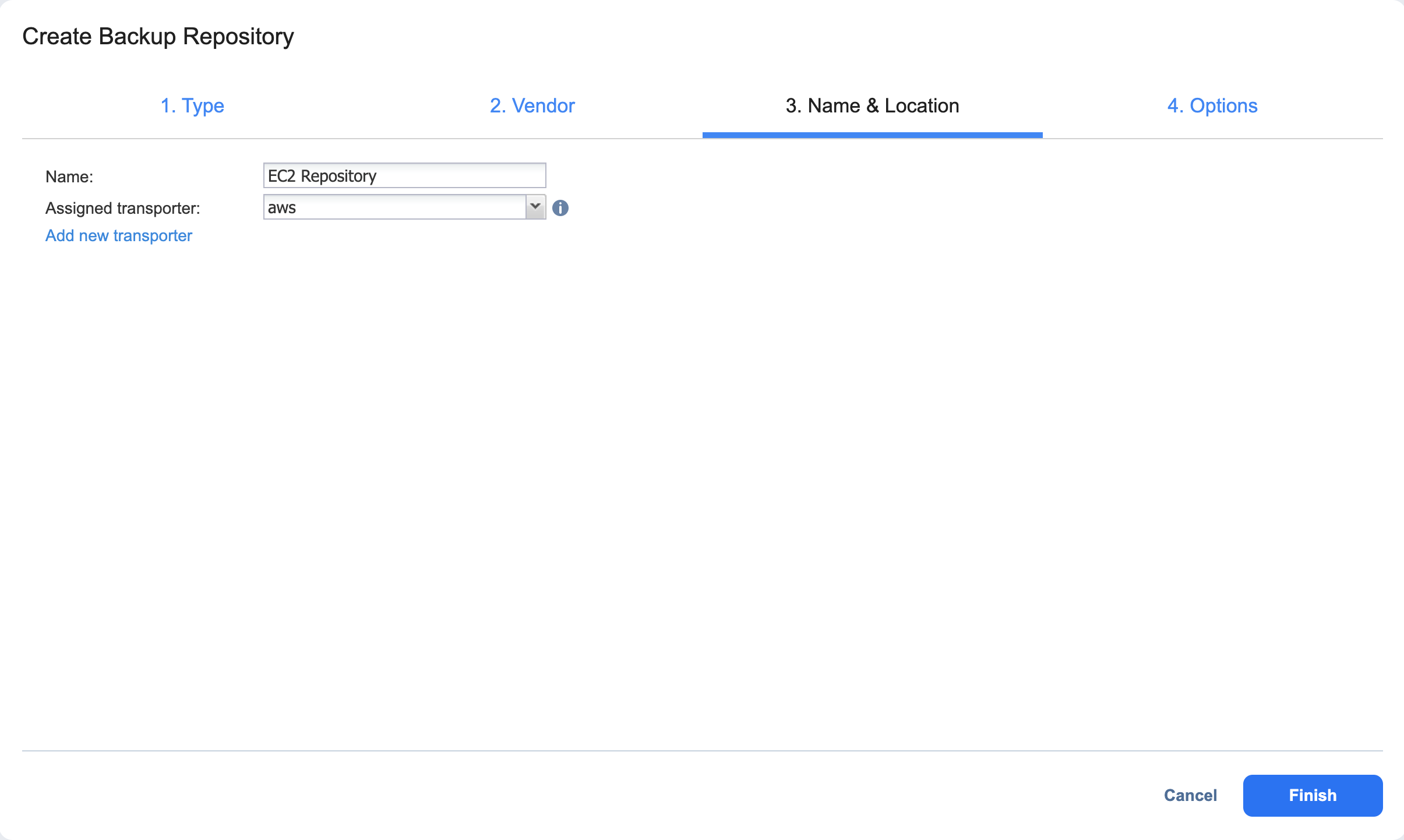 - Create Backup Repository: Vendor