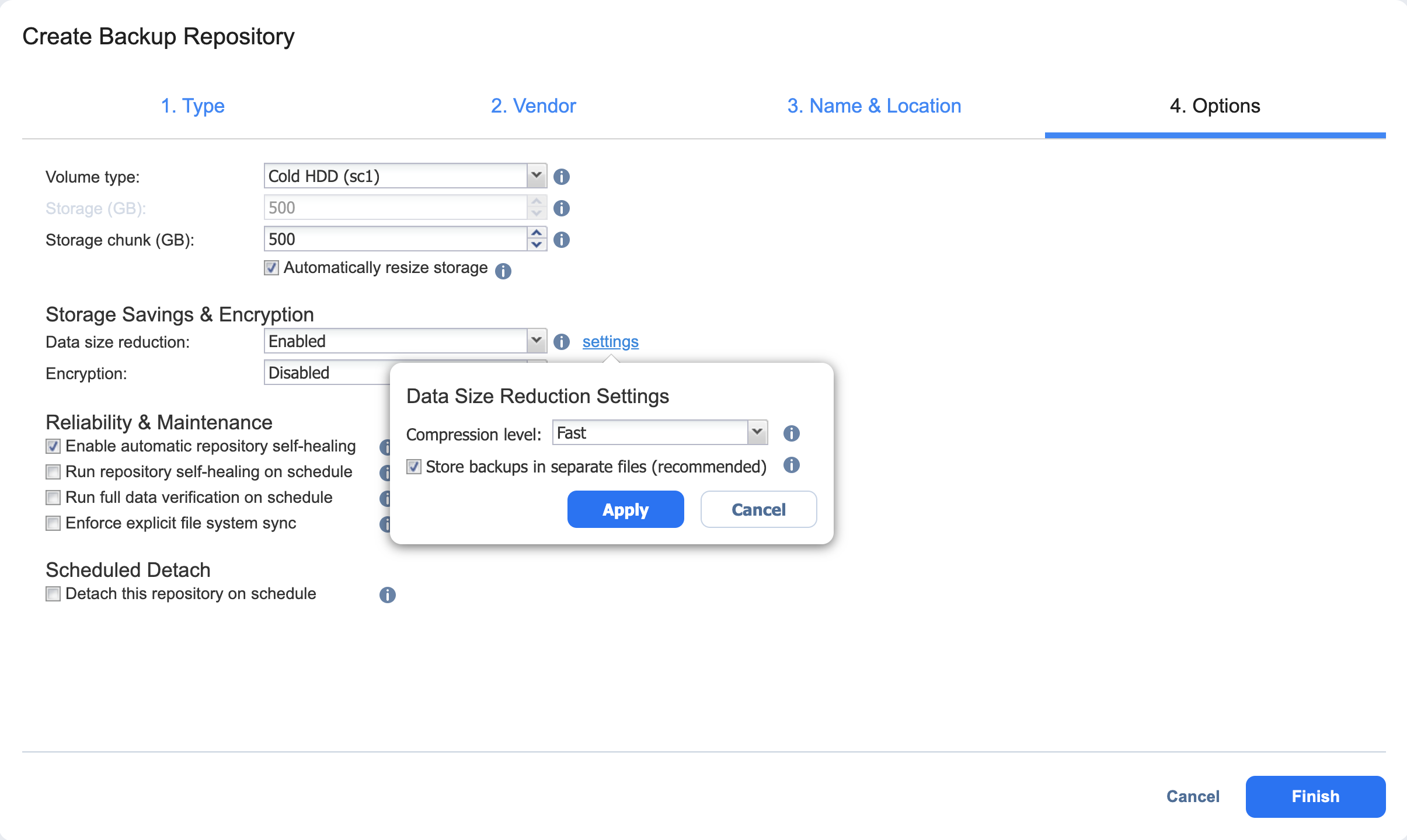 Create Backup Repository: Options