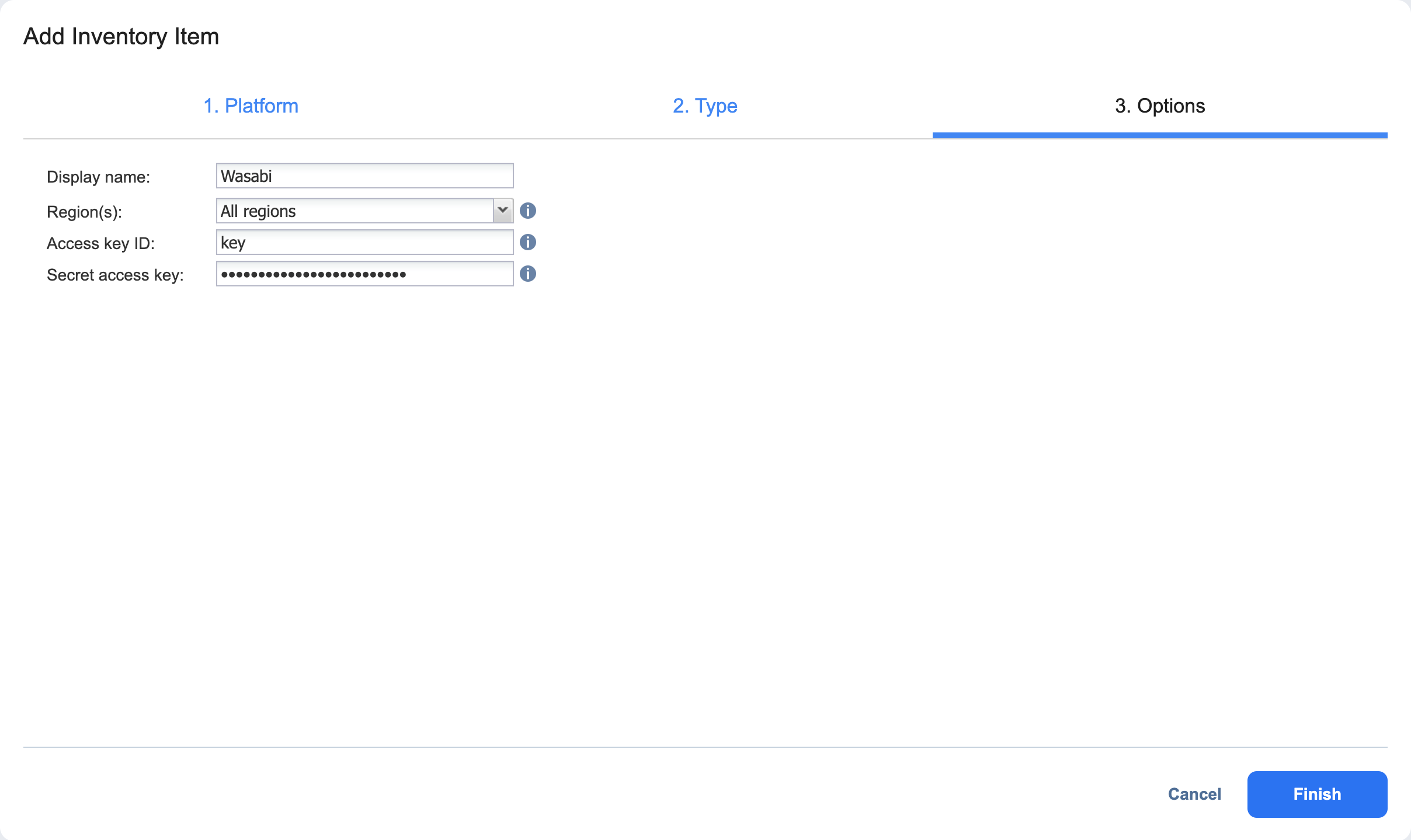 Add a Wasabi account to NAKIVO Backup & Replication as described in the sections below.