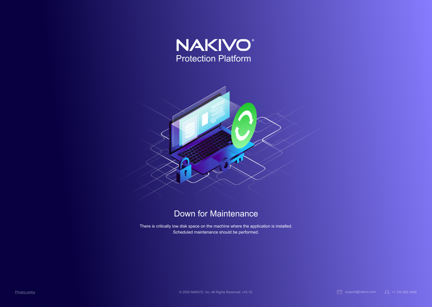 If less than 1 GB of free disk space is available, the instance user is disabled and the maintenance page is displayed.