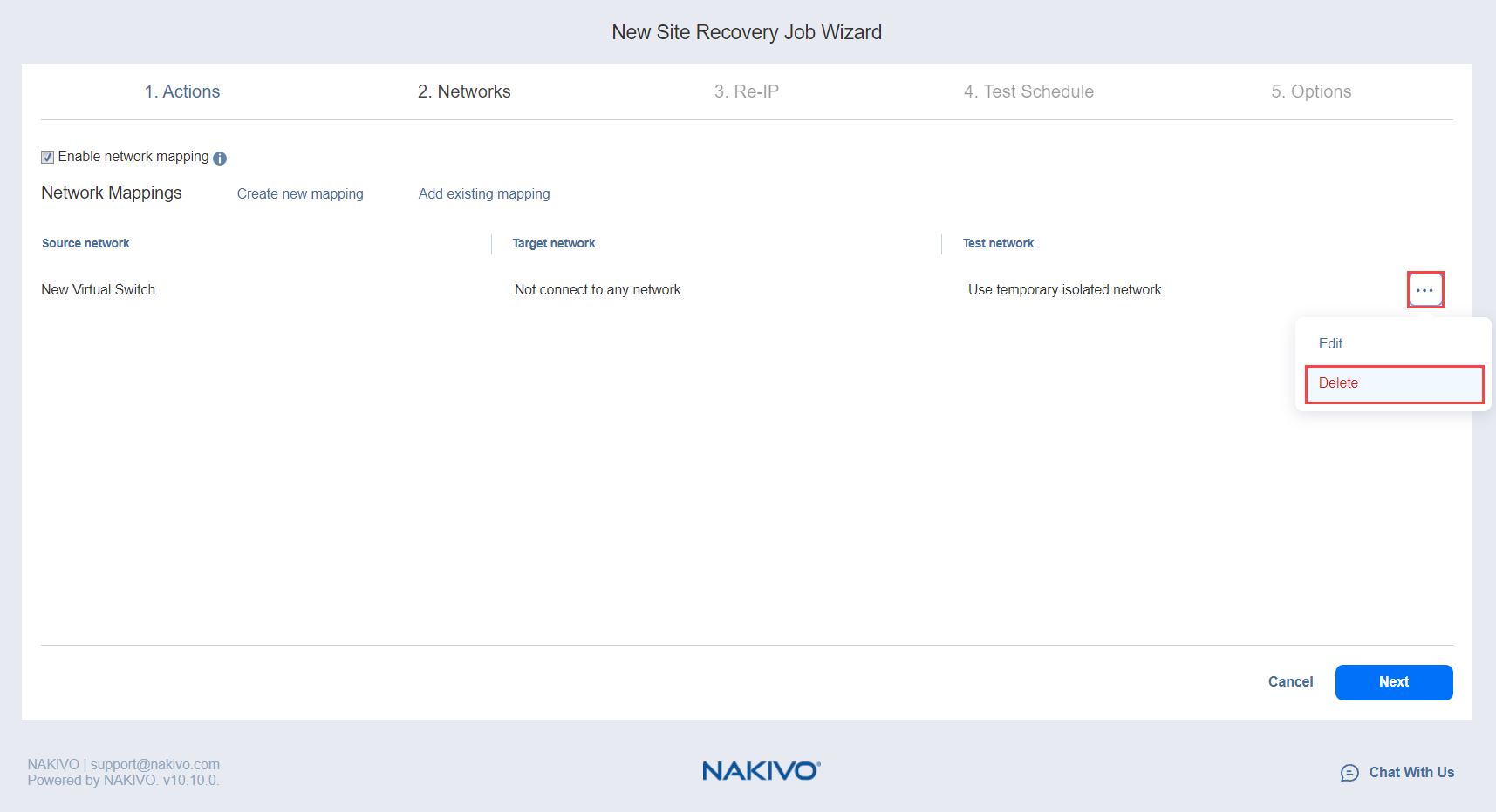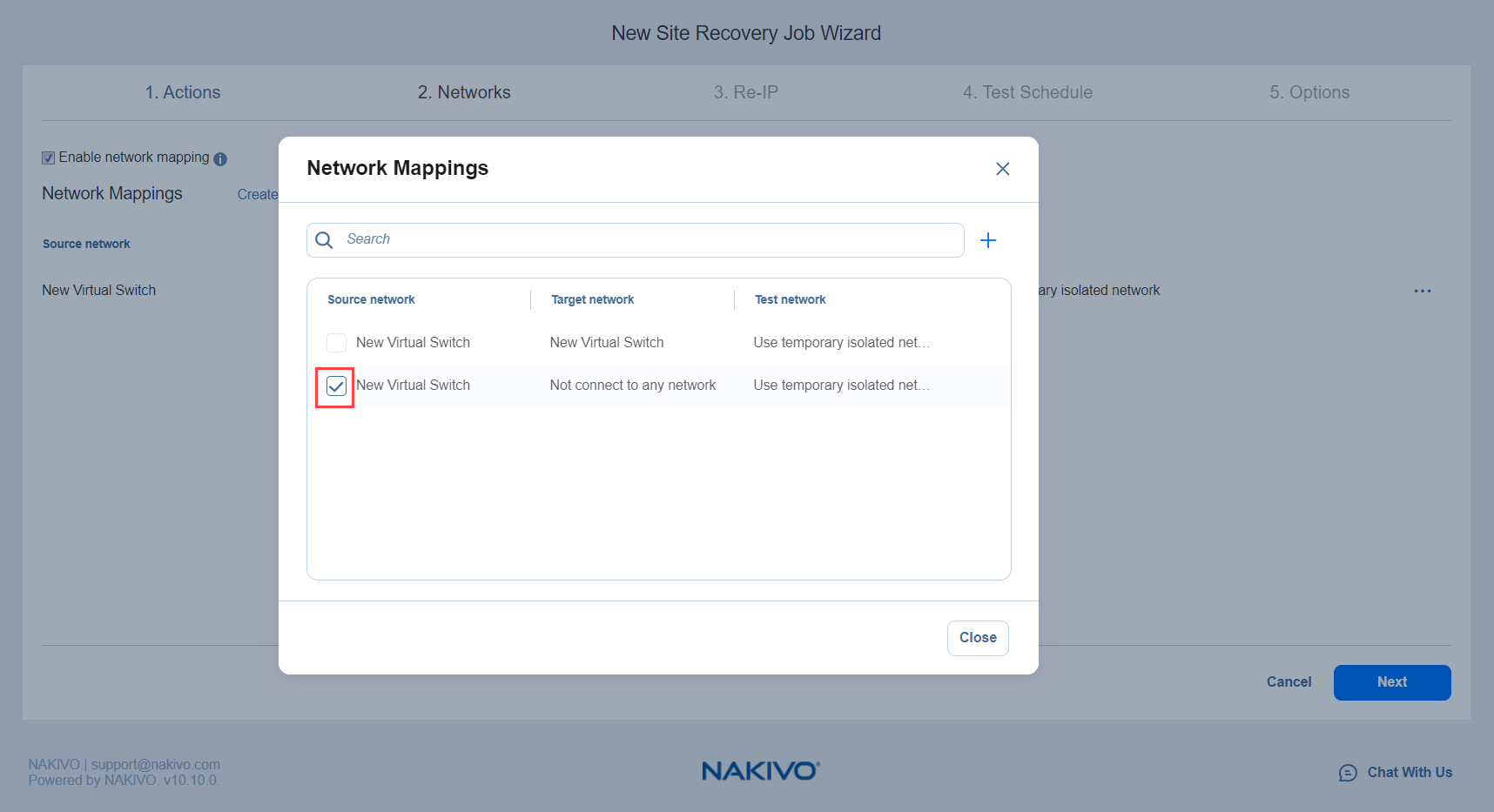 Site Recovery Job Wizard: Networks