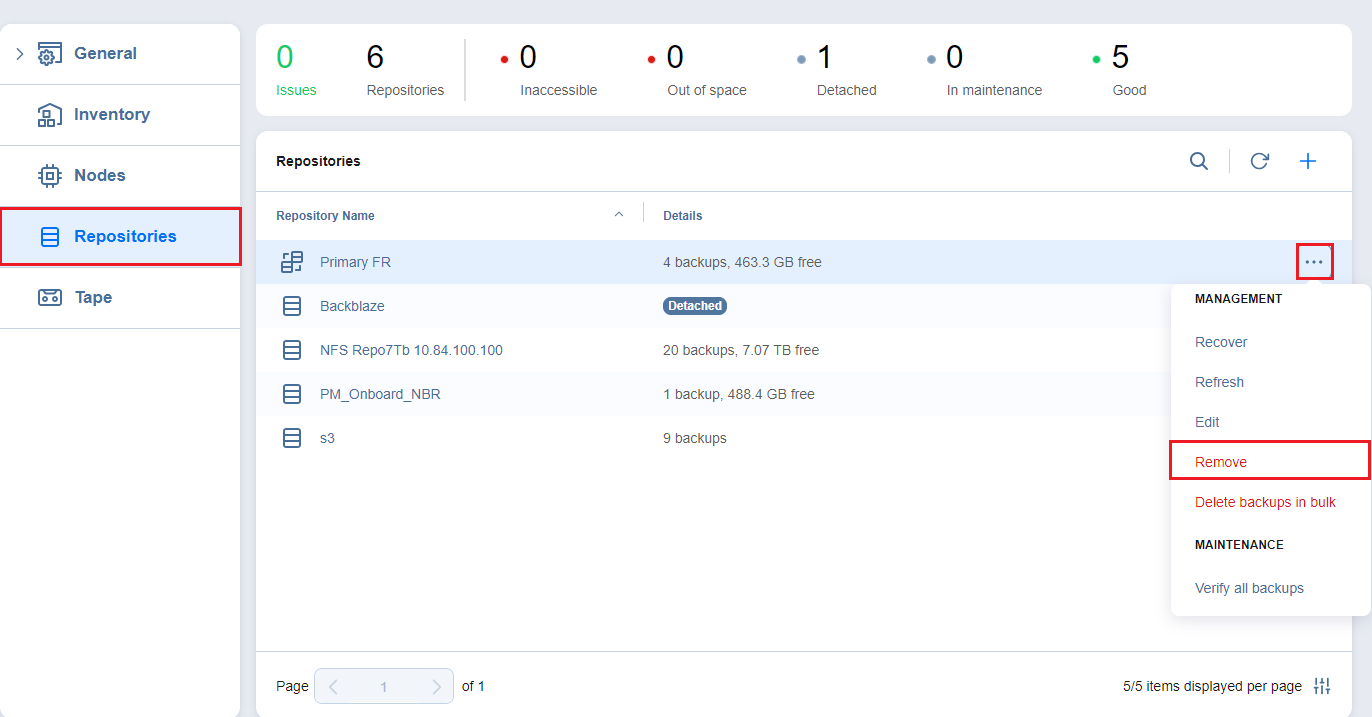 When you remove a federated repository, federated repository members and their contents are not removed and are treated as standalone backup repositories. However, the backup chains may be broken.