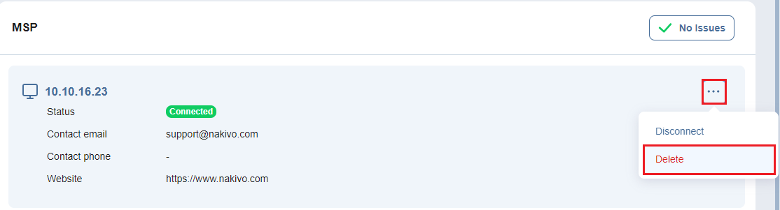 Disconnected: Your NAKIVO Backup & Replication is disconnected from the MSP