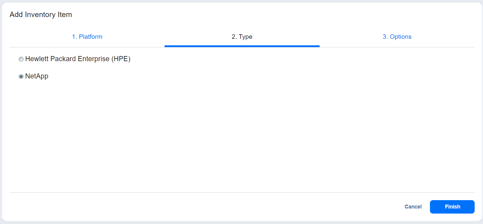 On the Type page of the wizard, select NetApp and click Next.