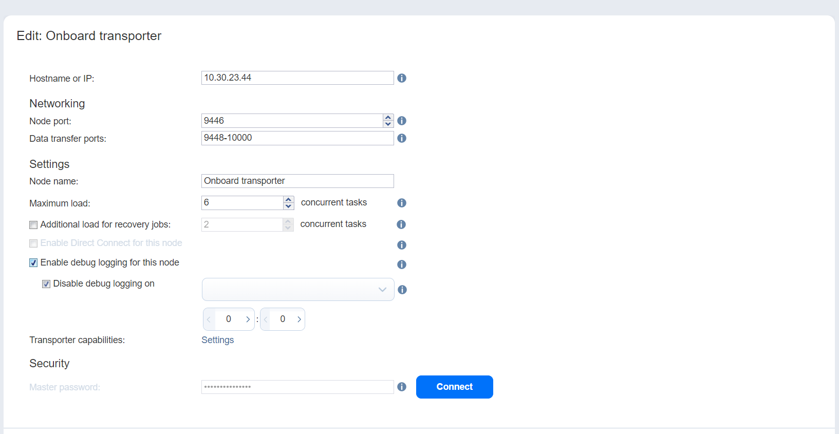• Enable debug logging for this node: Enable/disable debug level logging for the node. Having this option enabled on a permanent basis is not recommended.
