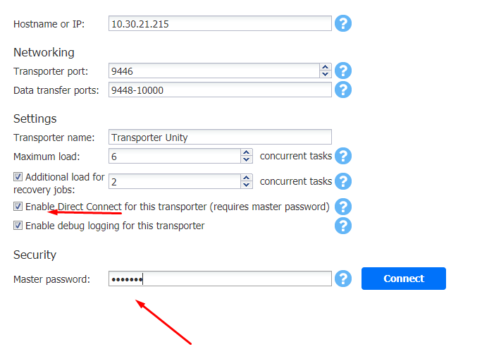 7. Select Enable Direct Connect for this transporter.