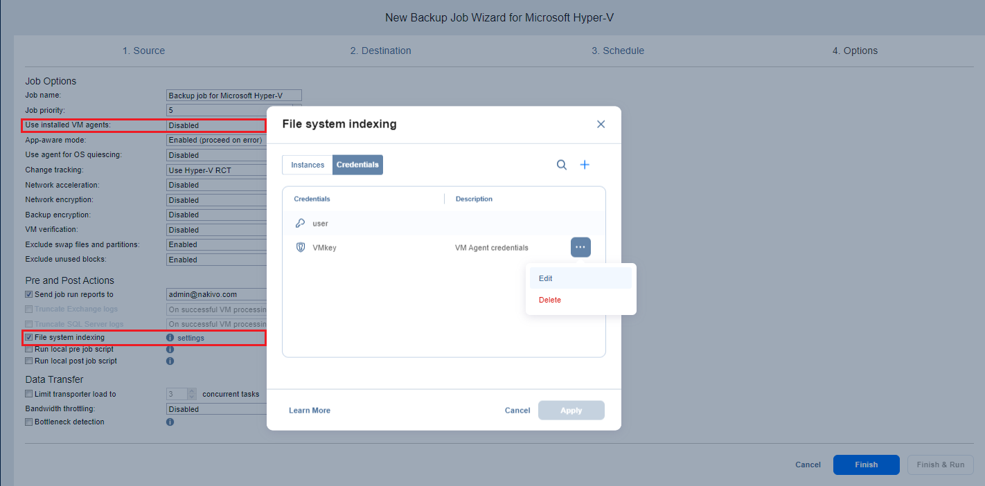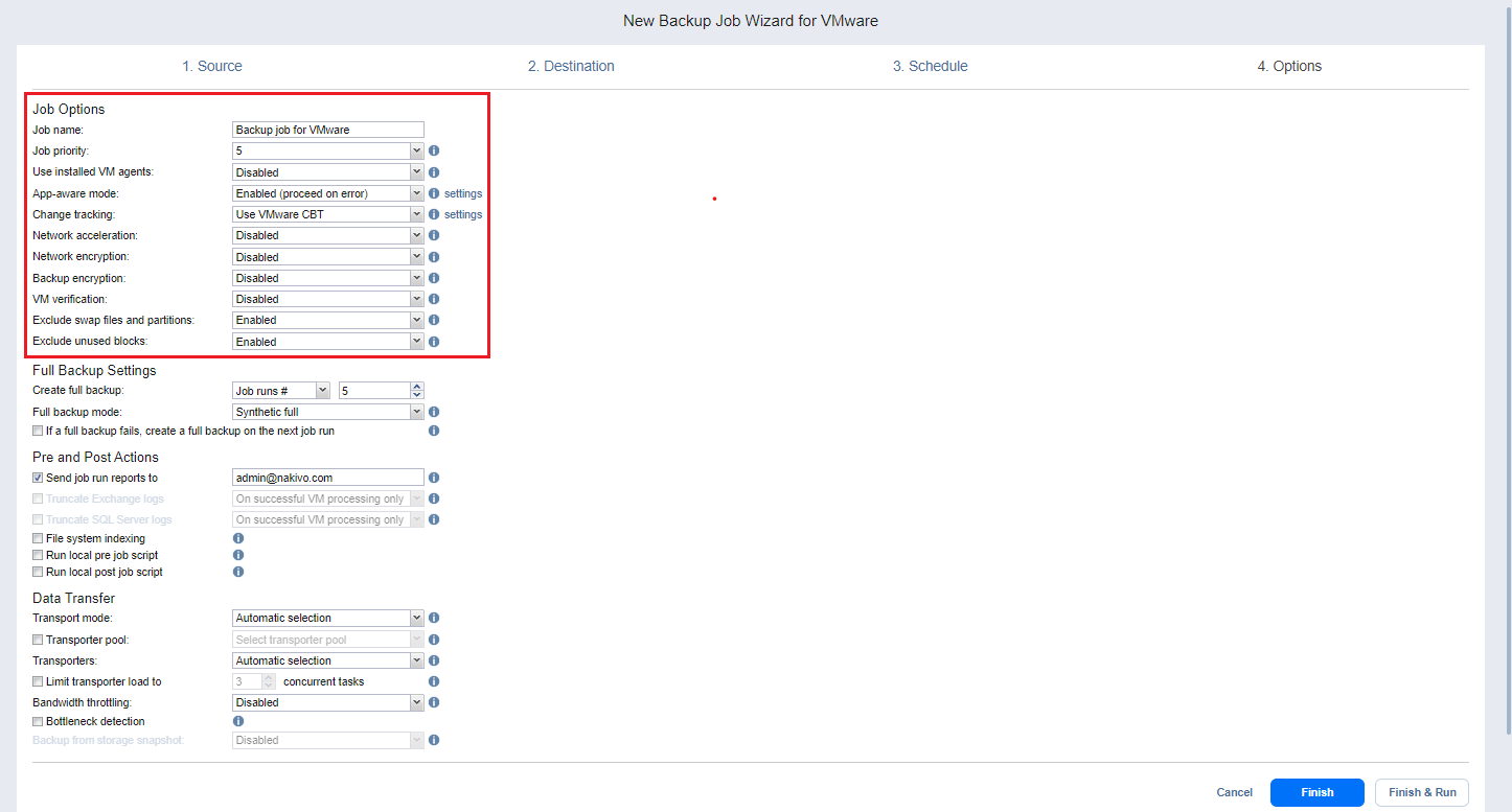 Backup Job Wizard for VMware: Options