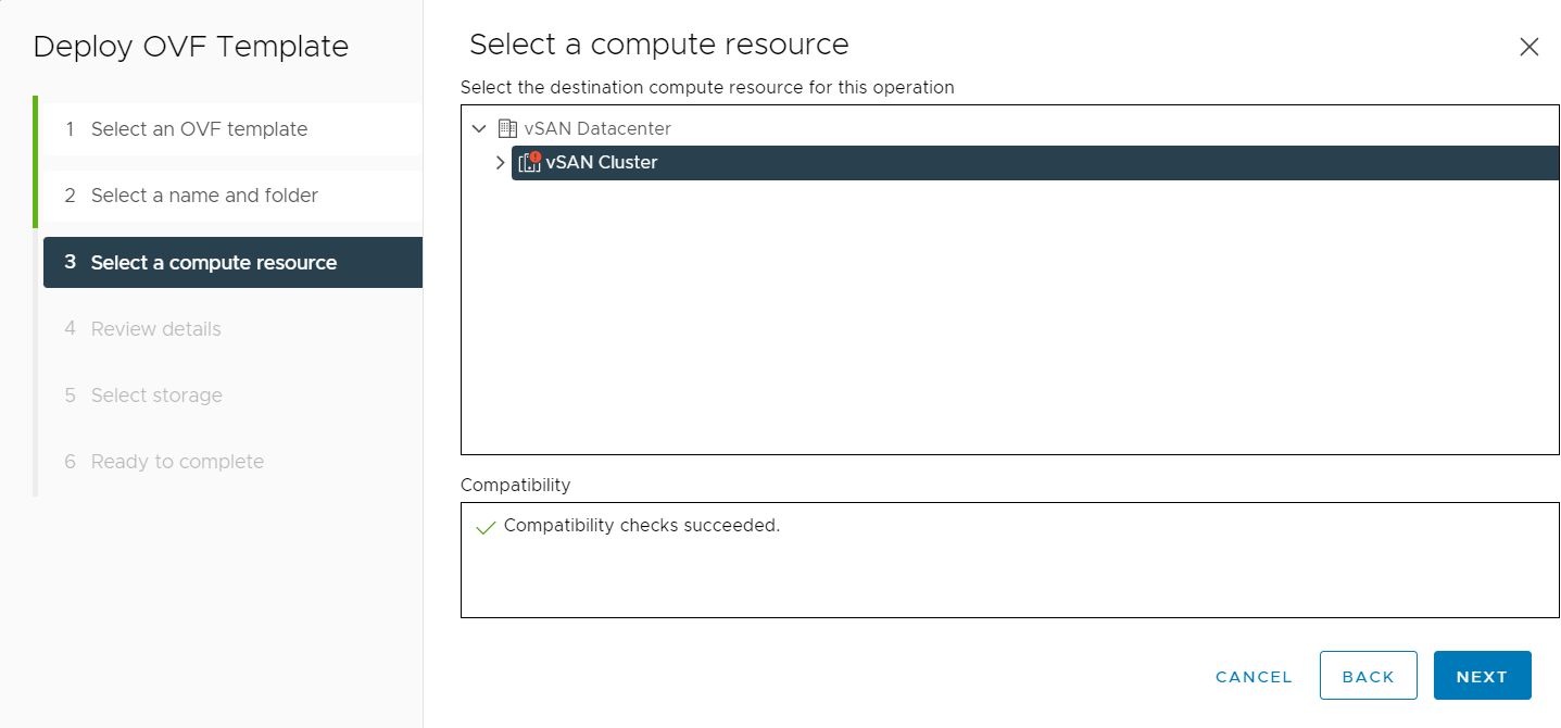 6. On the Select a computer resource page, select the resource pool within which you would like to deploy the Virtual Appliance and click Next.