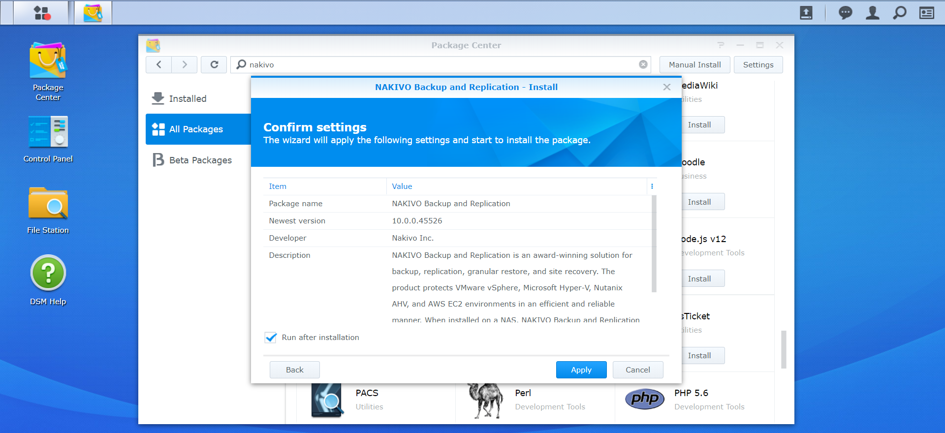 Optionally check Run after installation to start NAKIVO Backup & Replication immediately after the install process is finished. Click Apply.