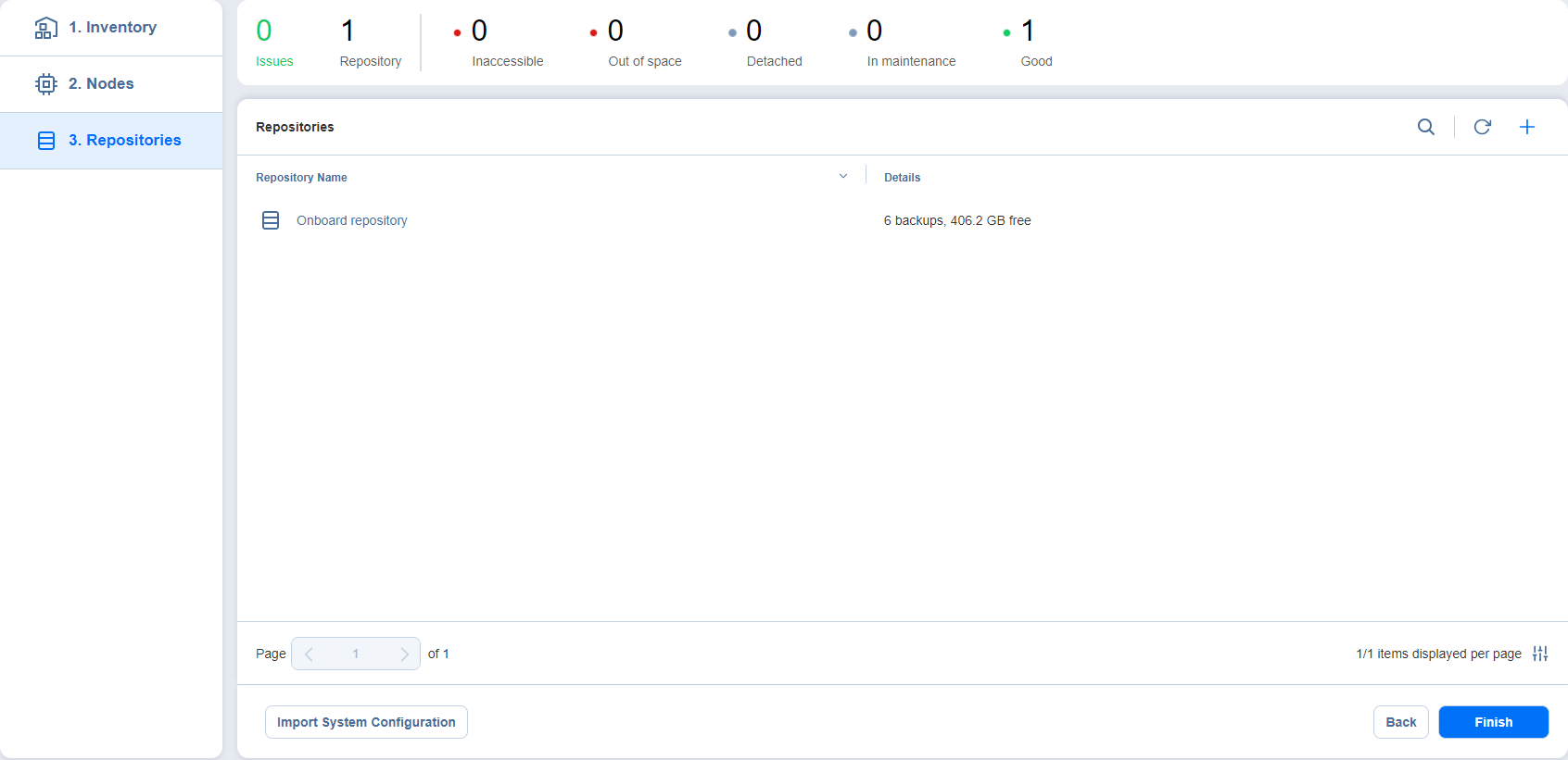 On the Repositories page of the wizard, you can add a local or a remote Backup Repository to your application by clicking Add Backup Repository.