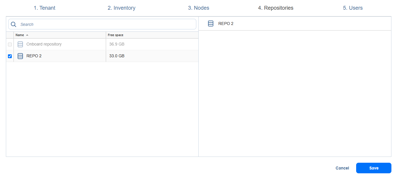 On the left pane of the screen, you can select the Backup Repositories to be assigned to the local tenant. The following information is available