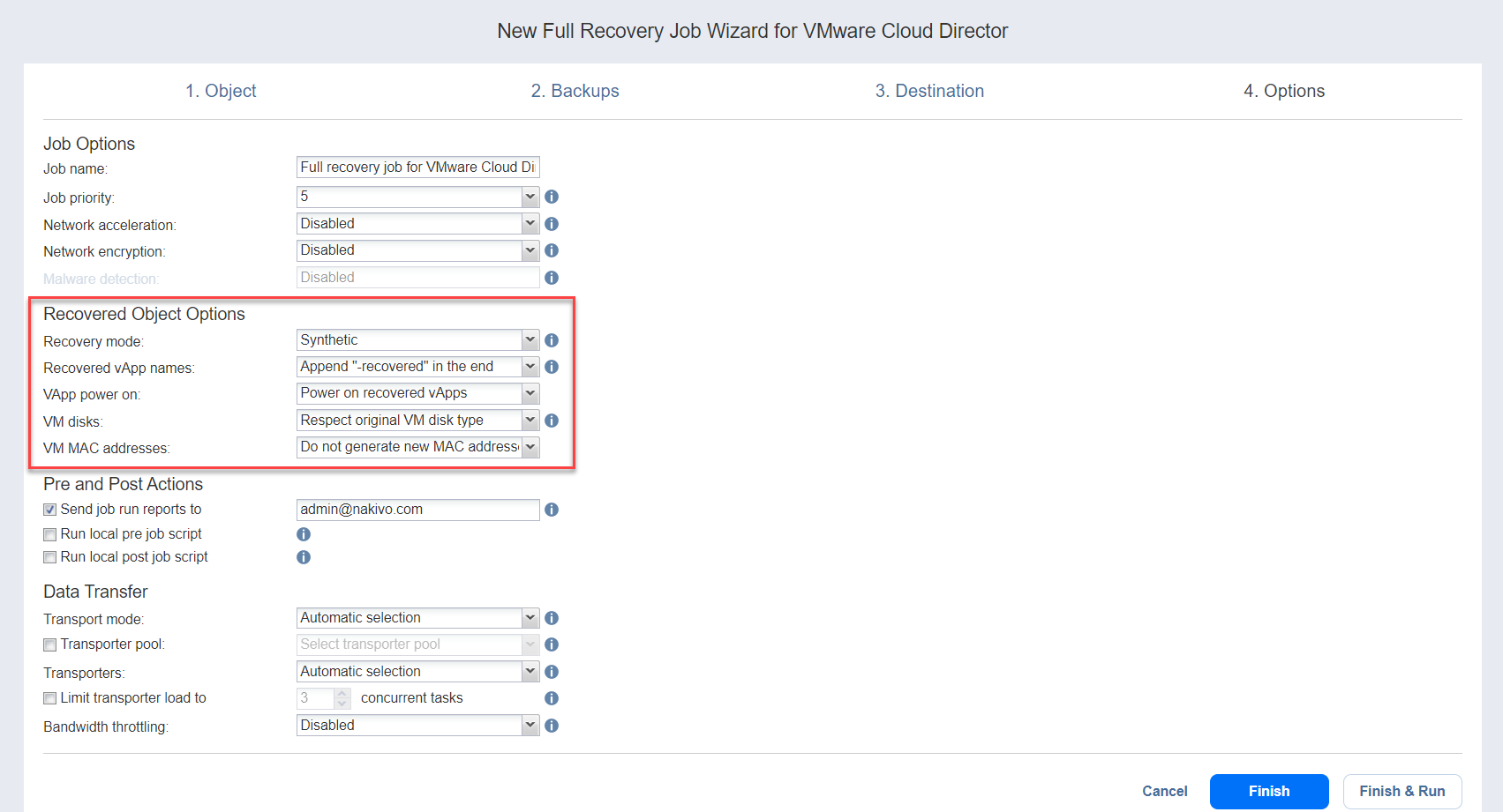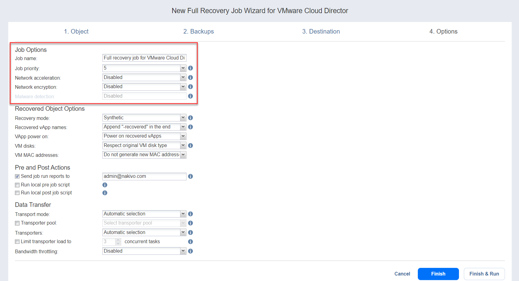 Recovery Job Wizard for VMware Cloud Director: Options