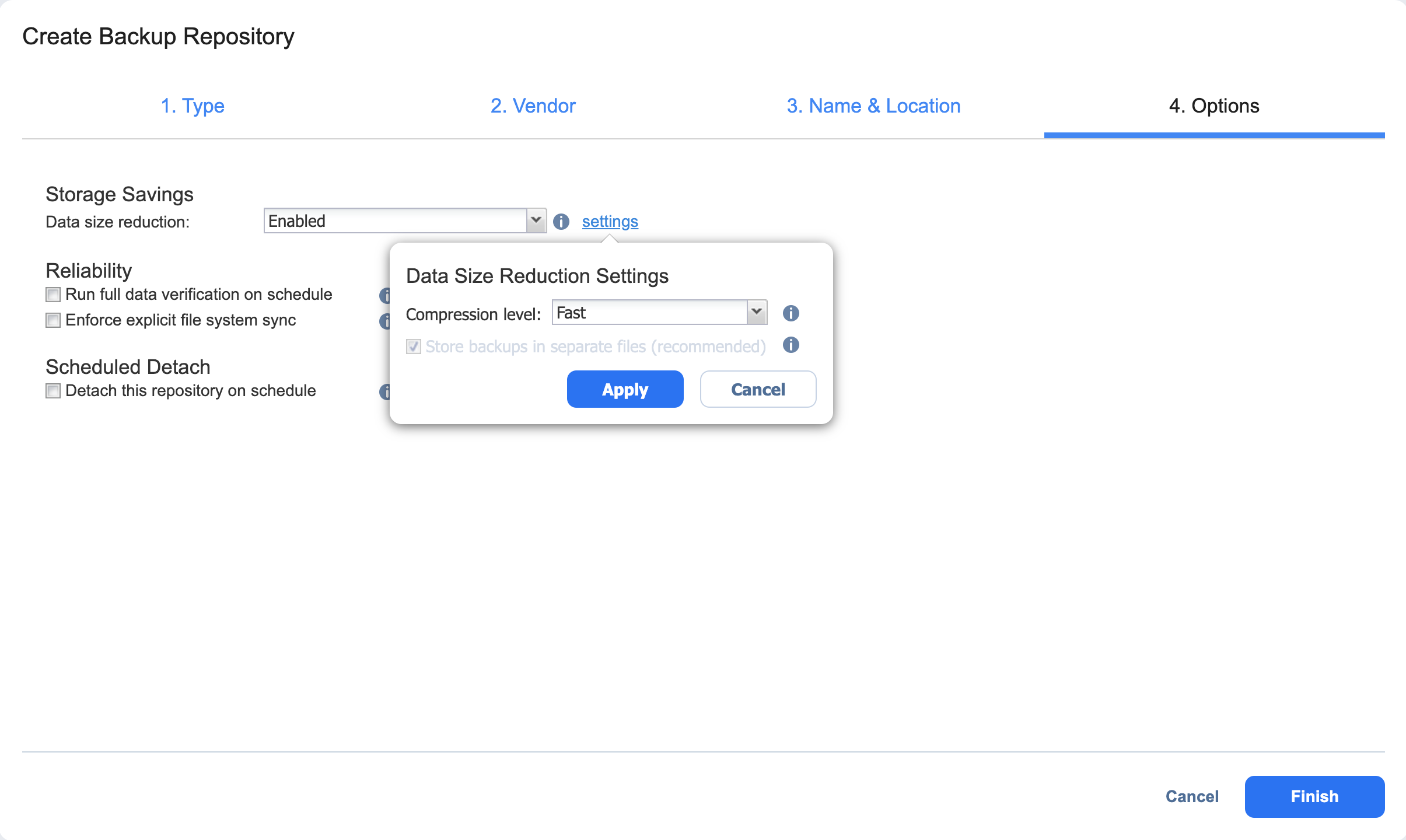 Create Backup Repository: Options