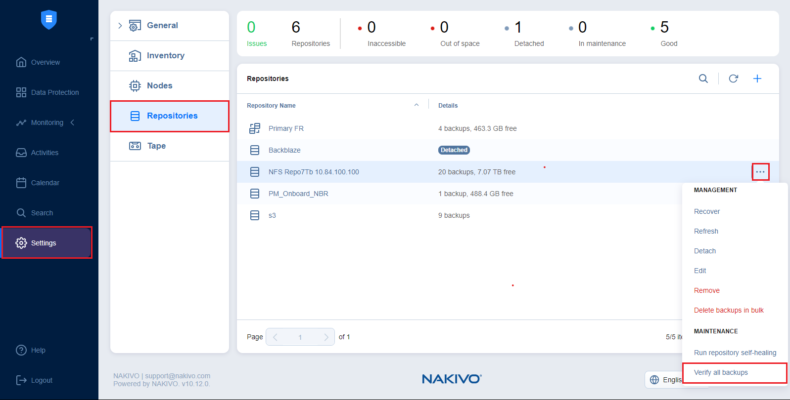 3. Hover over the desired backup, click on the "..." button, and then select Verify.