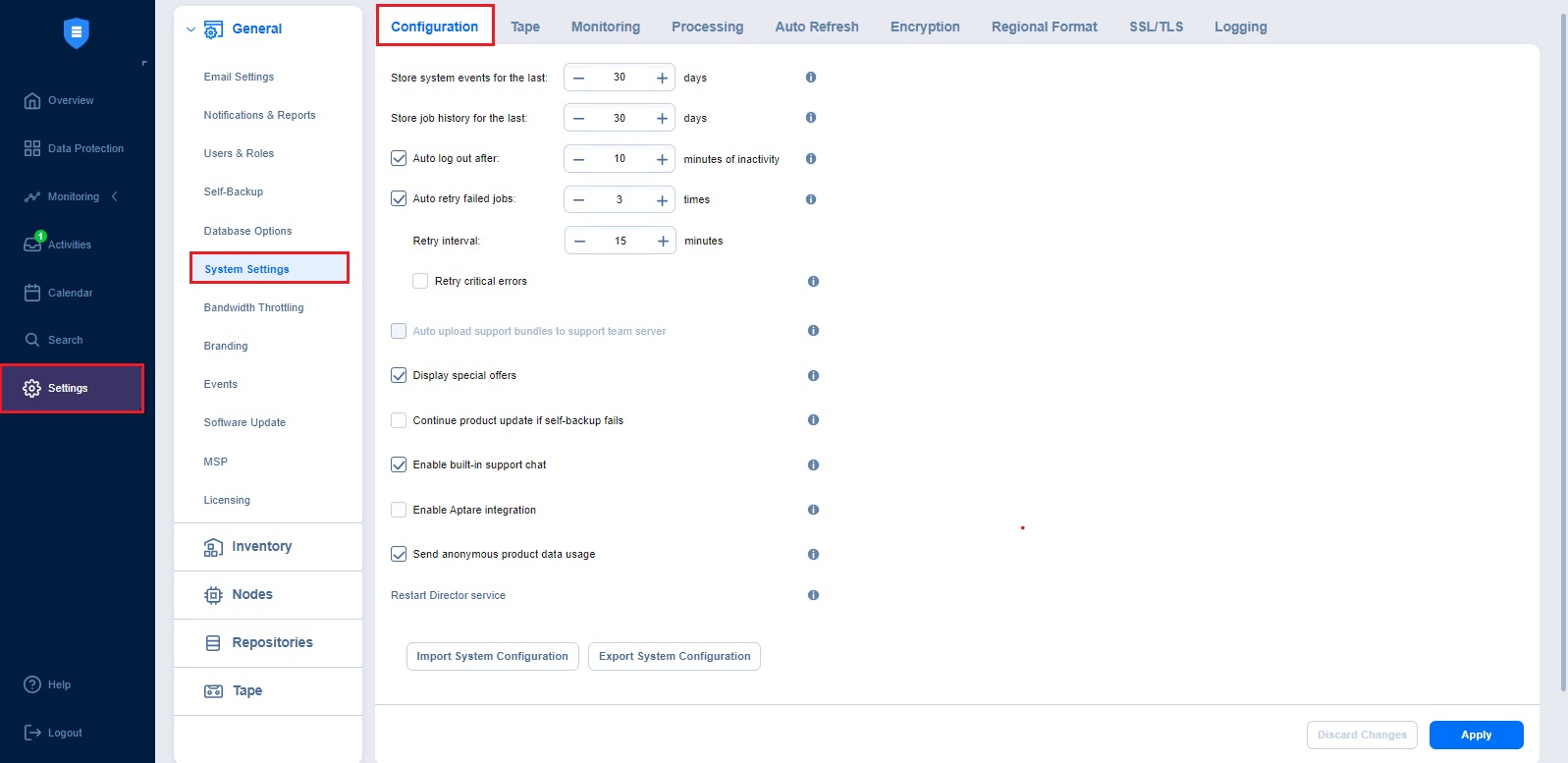 Display special offers: When this option is enabled, the NAKIVO special offers toolbar appears in the NAKIVO Backup & Replication interface.