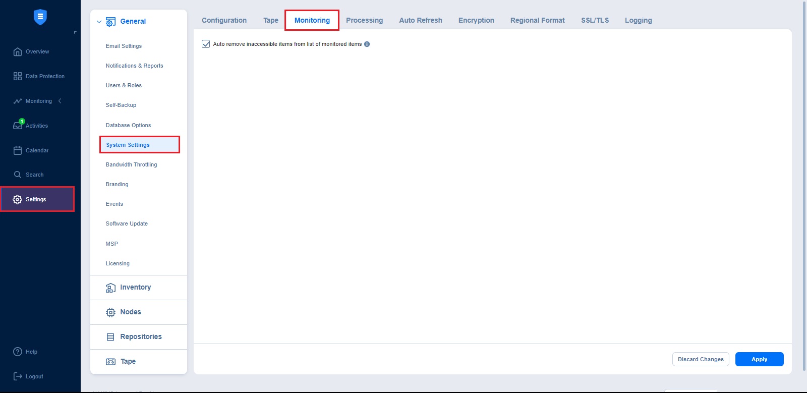 4. After making the necessary changes, click Apply. Alternatively, click Discard Changes to discard any changes you have made.