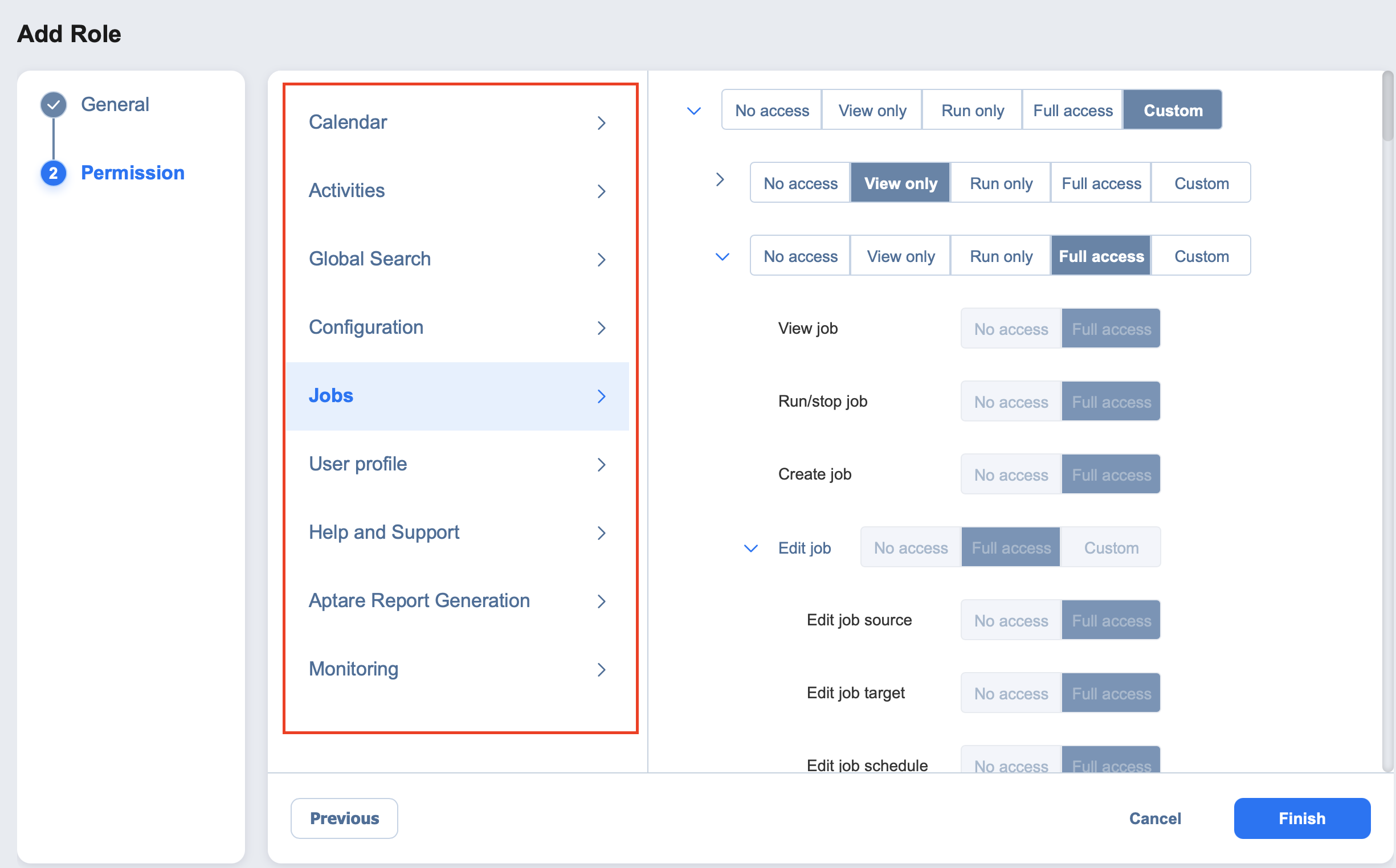 5. A list of permissions opens. Specify necessary permissions for the user role.
