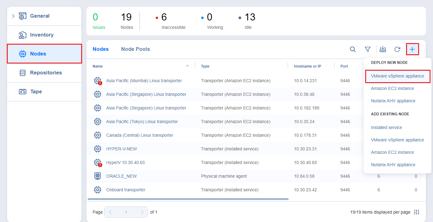 1. Click Settings in the left pane of the product, go to the Nodes tab, and click + .